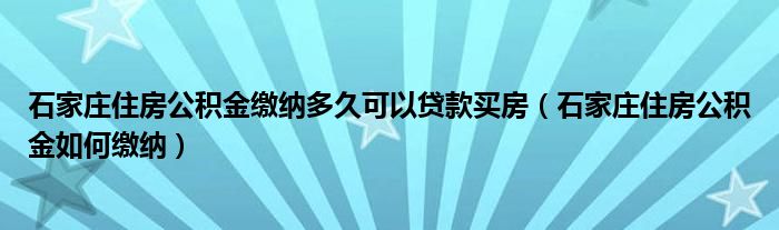 关于石家庄住房公积金缴纳多久可以贷款买房,石家庄住房公积金如何缴纳这个很多人还不知道,今天菲菲来为大家解答以上的问题,现在让我们一起来看看吧!