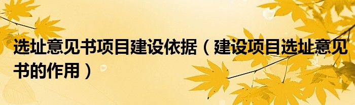 关于选址意见书项目建设依据,建设项目选址意见书的作用这个很多人还不知道,今天菲菲来为大家解答以上的问题,现在让我们一起来看看吧!