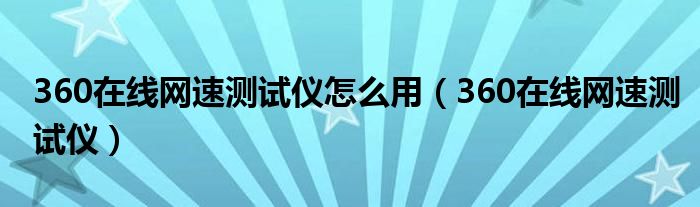 关于360在线网速测试仪怎么用,360在线网速测试仪这个很多人还不知道,今天菲菲来为大家解答以上的问题,现在让我们一起来看看吧!