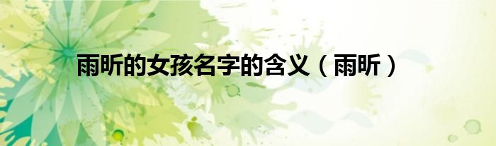 关于雨昕的女孩名字的含义,雨昕这个很多人还不知道,今天菲菲来为大家解答以上的问题,现在让我们一起来看看吧!