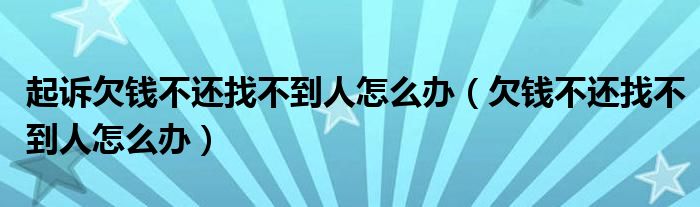 关于起诉欠钱不还找不到人怎么办,欠钱不还找不到人怎么办这个很多人还不知道,今天菲菲来为大家解答以上的问题,现在让我们一起来看看吧!