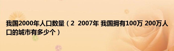 关于我国2000年人口数量,2 2007年 我国拥有100万 200万人口的城市有多少个这个很多人还不知道,今天菲菲来为大家解答以上的问题,现在让我们一起来看看吧!