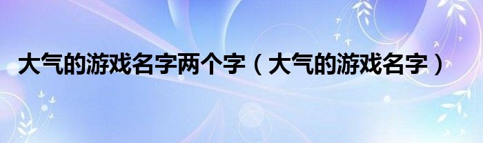 大气的游戏名字两个字,大气的游戏名字很多人还不知道,乐乐来为大家解答以上问题,现在让我们一起来看看吧!