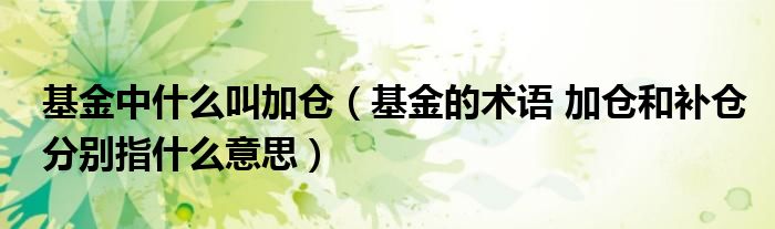 关于基金中什么叫加仓,基金的术语 加仓和补仓分别指什么意思这个很多人还不知道,今天菲菲来为大家解答以上的问题,现在让我们一起来看看吧!