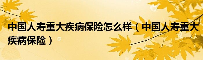 关于中国人寿重大疾病保险怎么样,中国人寿重大疾病保险这个很多人还不知道,今天菲菲来为大家解答以上的问题,现在让我们一起来看看吧!