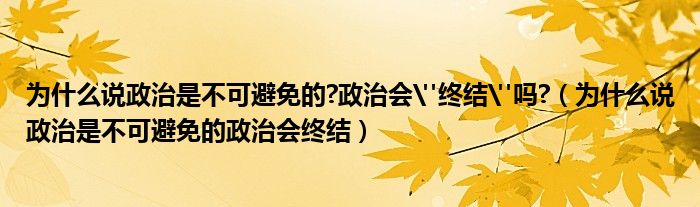 关于为什么说政治是不可避免的?政治会"终结"吗?,为什么说政治是不可避免的政治会终结这个很多人还不知道,今天菲菲来为大家解答以上的问题,现在让我们一起来看看吧!