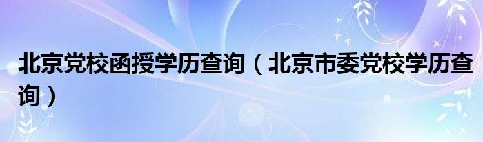 北京党校函授学历查询(北京市委党校学历查询)