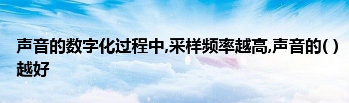关于声音的数字化过程中,采样频率越高,声音的( )越好这个很多人还不知道,今天菲菲来为大家解答以上的问题,现在让我们一起来看看吧!