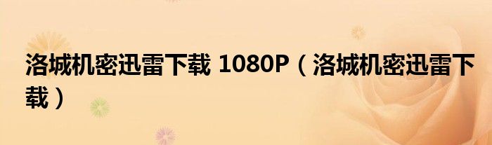 关于洛城机密迅雷下载 1080P,洛城机密迅雷下载这个很多人还不知道,今天菲菲来为大家解答以上的问题,现在让我们一起来看看吧!