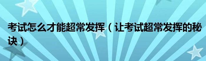 大家好,小晋来为大家解答以下问题,关于考试怎么才能超常发挥,让考试超常发挥的秘诀很多人还不知道,今天让我们一起来看看吧!