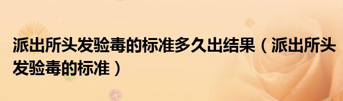 大家好,小晋来为大家解答以下问题,关于派出所头发验毒的标准多久出结果,派出所头发验毒的标准很多人还不知道,今天让我们一起来看看吧!