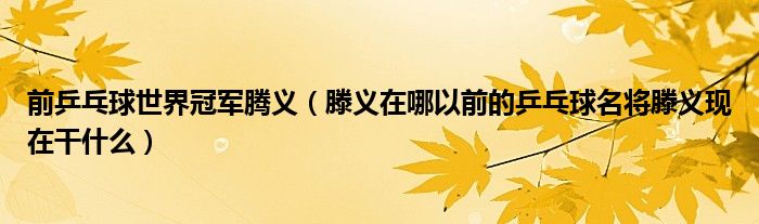 关于前乒乓球世界冠军腾义,滕义在哪以前的乒乓球名将滕义现在干什么这个很多人还不知道,今天菲菲来为大家解答以上的问题,现在让我们一起来看看吧!