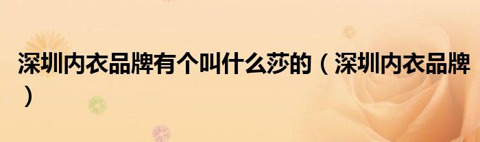 关于深圳内衣品牌有个叫什么莎的,深圳内衣品牌这个很多人还不知道,今天菲菲来为大家解答以上的问题,现在让我们一起来看看吧!