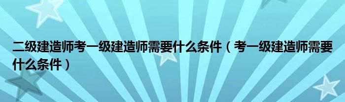关于二级建造师考一级建造师需要什么条件,考一级建造师需要什么条件这个很多人还不知道,今天菲菲来为大家解答以上的问题,现在让我们一起来看看吧!