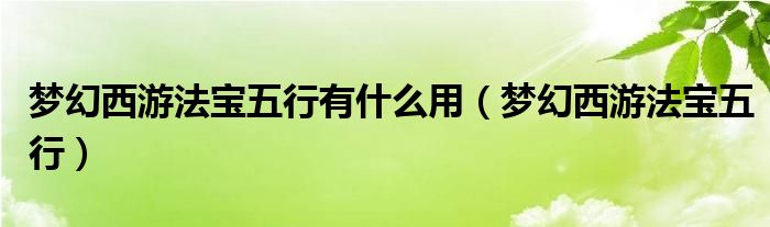 关于梦幻西游法宝五行有什么用,梦幻西游法宝五行这个很多人还不知道,今天菲菲来为大家解答以上的问题,现在让我们一起来看看吧!