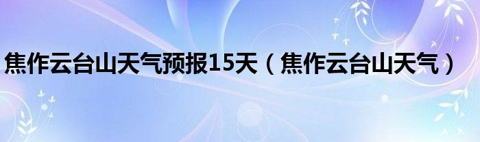 关于焦作云台山天气预报15天,焦作云台山天气这个很多人还不知道,今天菲菲来为大家解答以上的问题,现在让我们一起来看看吧!