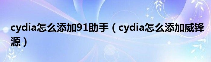 cydia怎么添加91助手(cydia怎么添加威锋源)