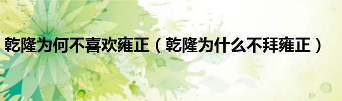 大家好,小晋来为大家解答以下问题,关于乾隆为何不喜欢雍正,乾隆为什么不拜雍正很多人还不知道,今天让我们一起来看看吧!