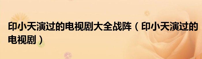 关于印小天演过的电视剧大全战阵,印小天演过的电视剧这个很多人还不知道,今天菲菲来为大家解答以上的问题,现在让我们一起来看看吧!