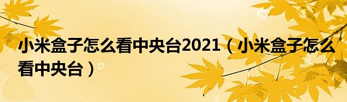 大家好,小晋来为大家解答以下问题,关于小米盒子怎么看中央台2021,小米盒子怎么看中央台很多人还不知道,今天让我们一起来看看吧!