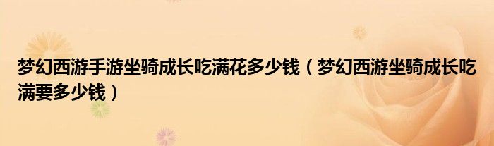 关于梦幻西游手游坐骑成长吃满花多少钱,梦幻西游坐骑成长吃满要多少钱这个很多人还不知道,今天菲菲来为大家解答以上的问题,现在让我们一起来看看吧!
