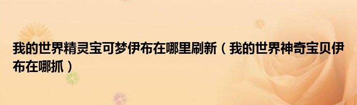 关于我的世界精灵宝可梦伊布在哪里刷新,我的世界神奇宝贝伊布在哪抓这个很多人还不知道,今天菲菲来为大家解答以上的问题,现在让我们一起来看看吧!