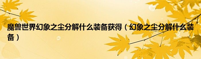 关于魔兽世界幻象之尘分解什么装备获得,幻象之尘分解什么装备这个很多人还不知道,今天菲菲来为大家解答以上的问题,现在让我们一起来看看吧!