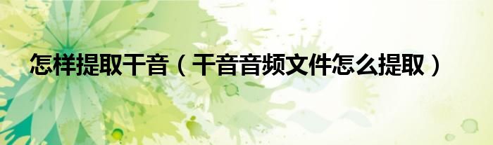关于怎样提取干音,干音音频文件怎么提取这个很多人还不知道,今天菲菲来为大家解答以上的问题,现在让我们一起来看看吧!