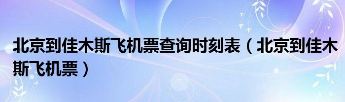 关于北京到佳木斯飞机票查询时刻表,北京到佳木斯飞机票这个很多人还不知道,今天菲菲来为大家解答以上的问题,现在让我们一起来看看吧!