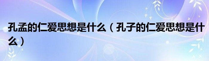 孔孟的仁爱思想是什么(孔子的仁爱思想是什么)